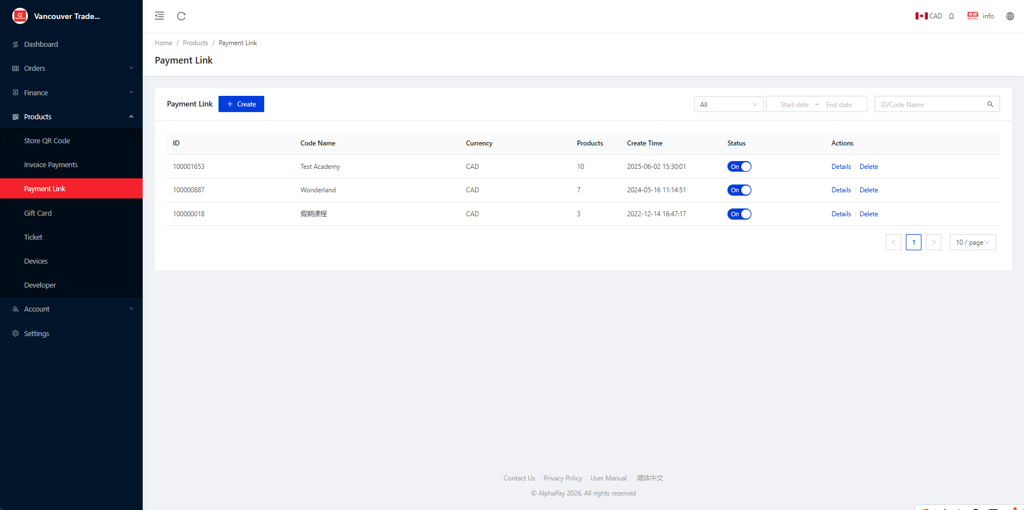 - Login to AlphaPay Dashboard