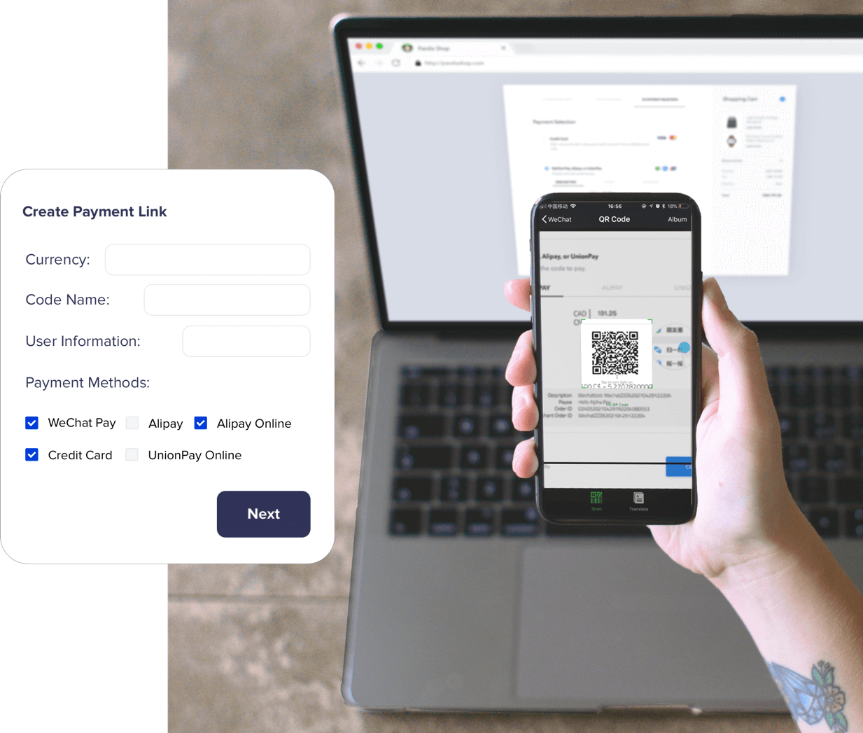 客户直接从其中国银行帐户中以人民币与微信或支付宝的实时汇率向商户付款。 腾讯将人民币结算到Alpha Pay,然后Alpha Pay结算到客户指定的加拿大加元银行帐户。
