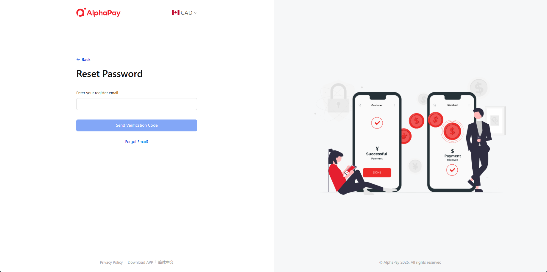 Enter the Register Email Address and click Send Verification Code