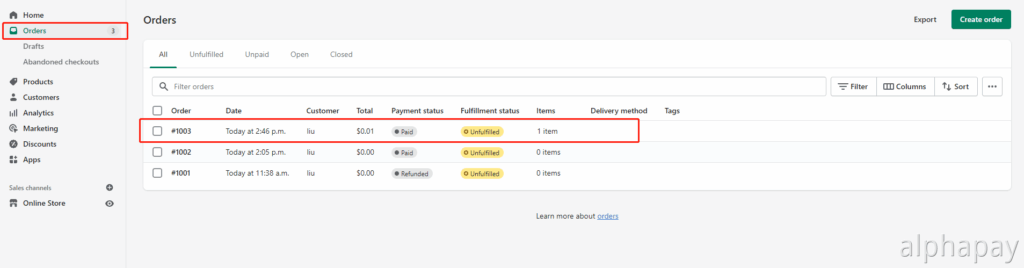 • Go to 订单记录 in Shopify